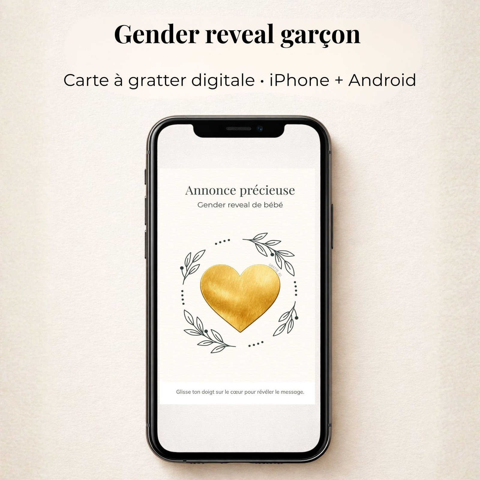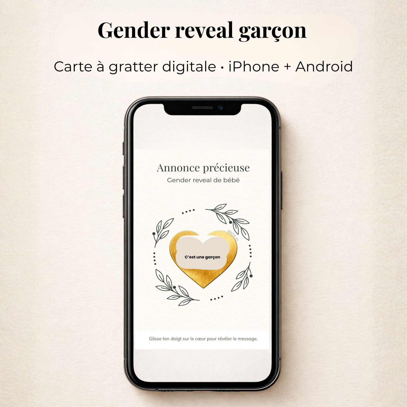 Gender reveal Annonce garçon – Carte surprise à gratter digitale