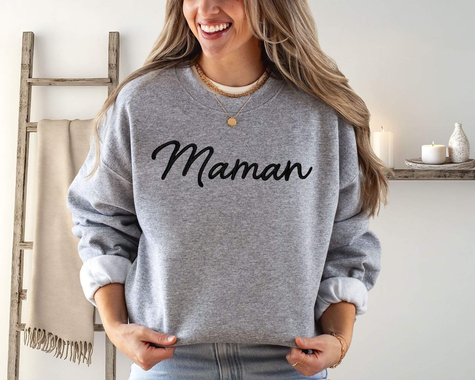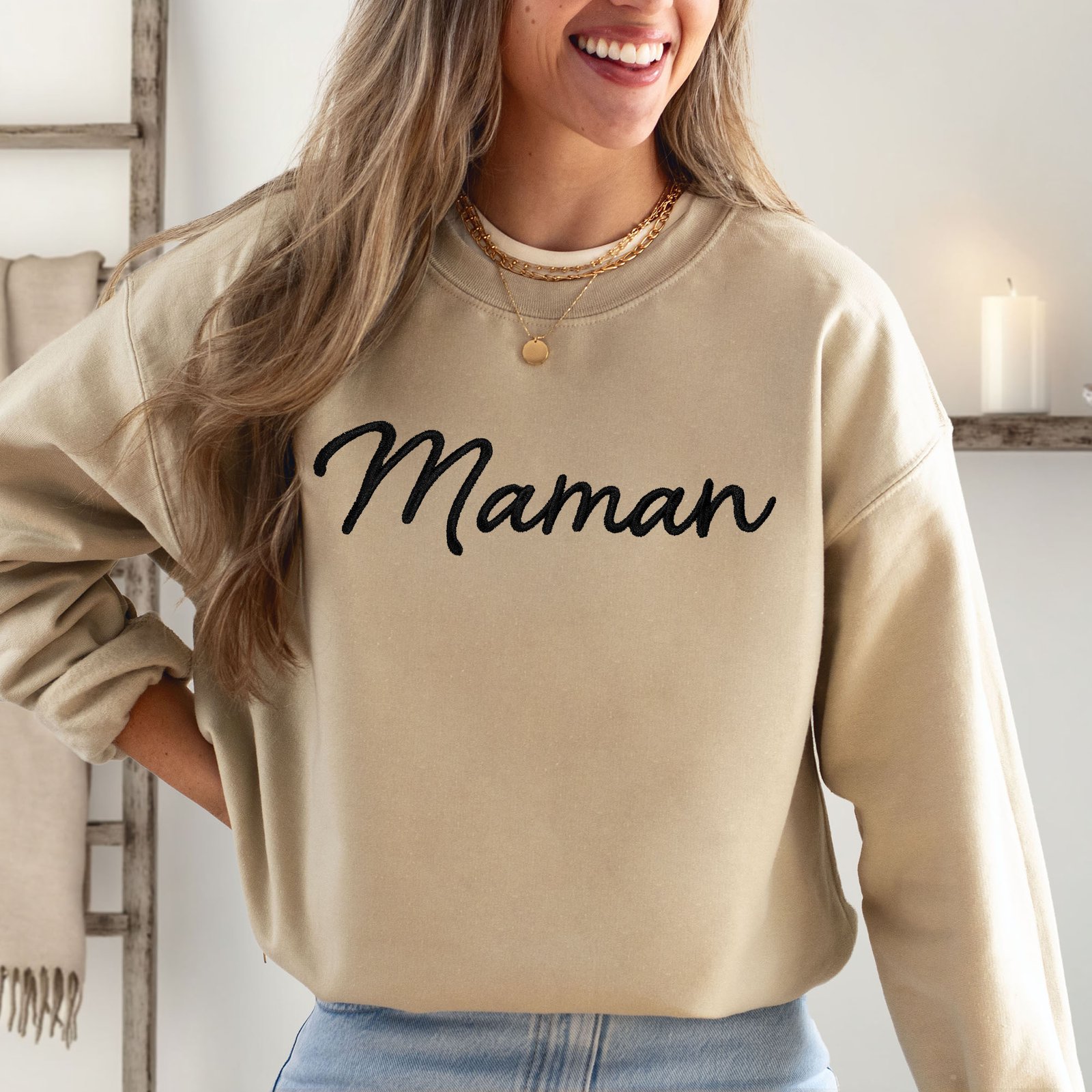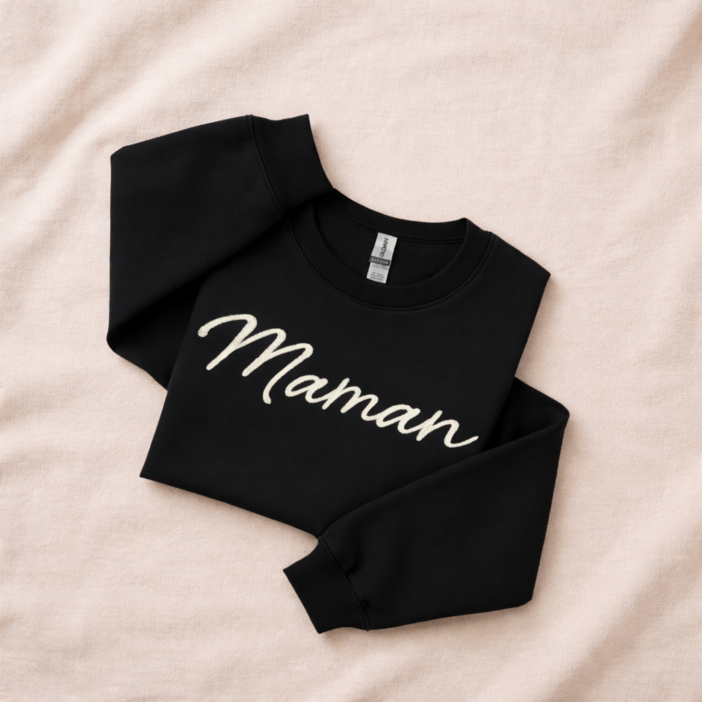 Maman Essence Pure – Crewneck brodé minimaliste personnalisé